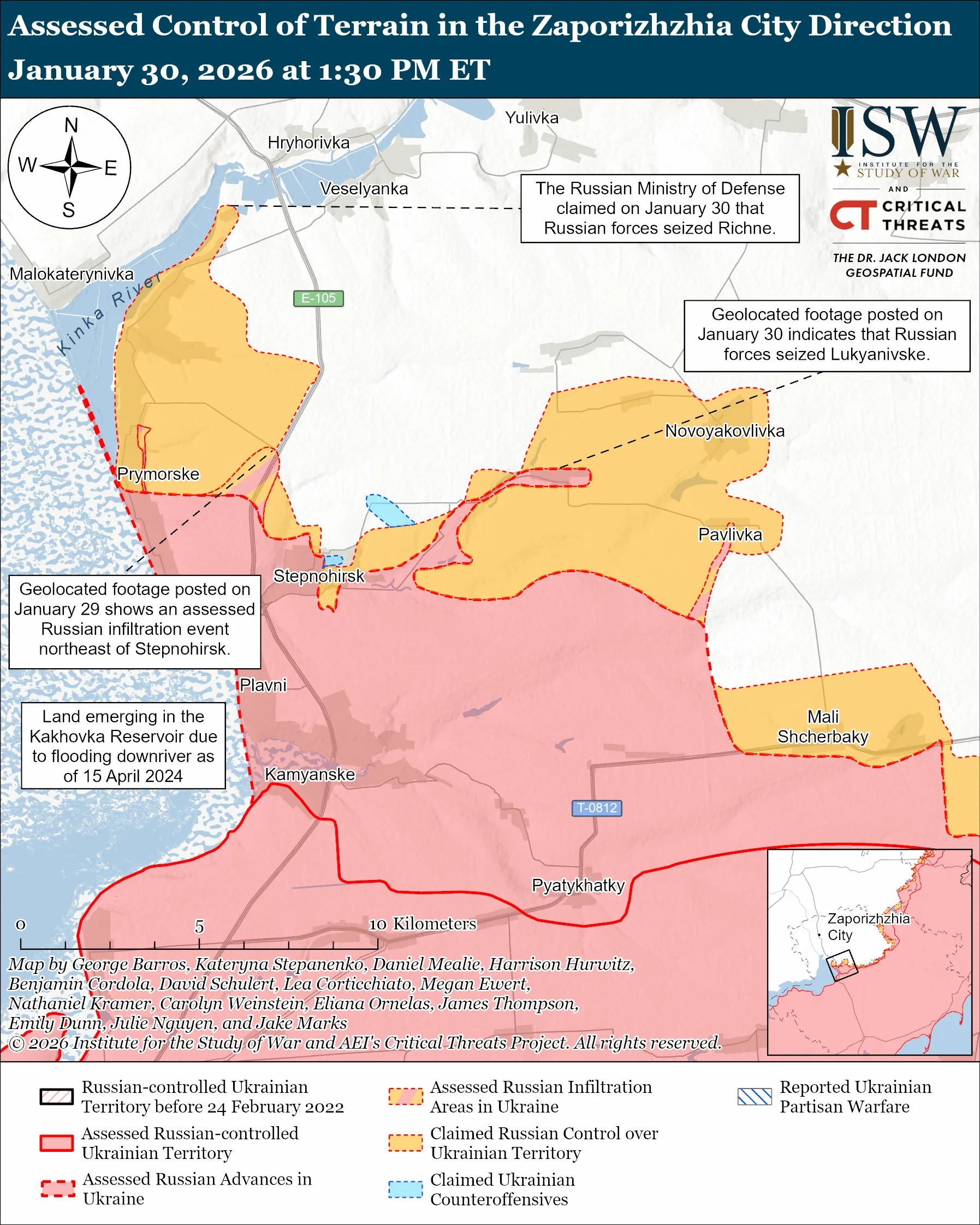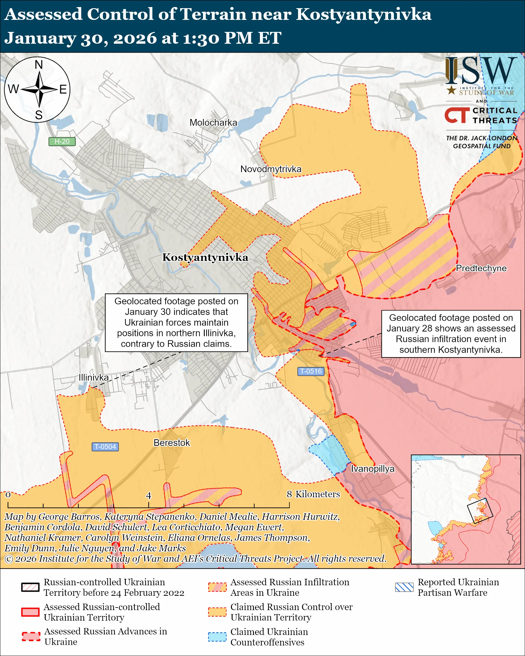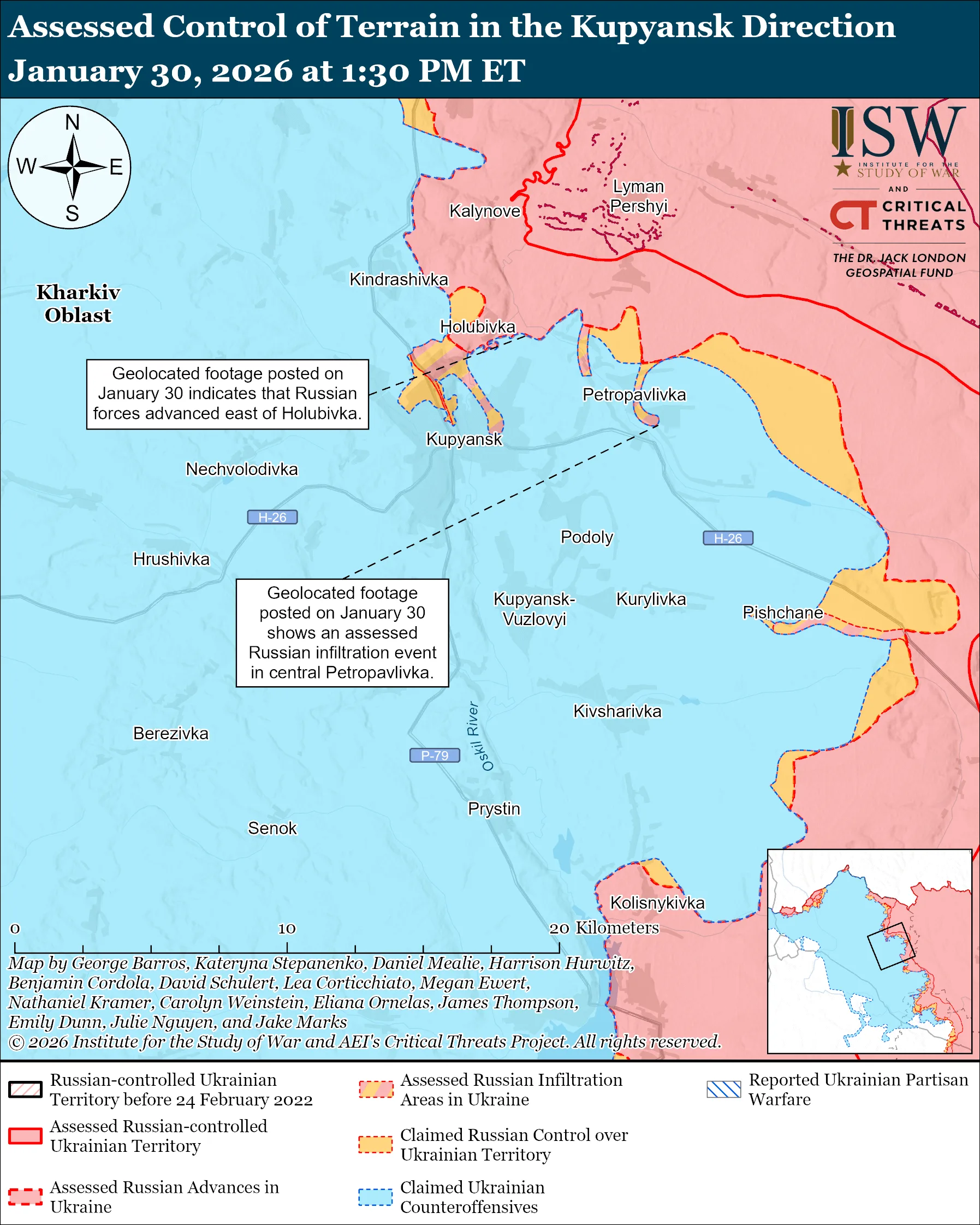 Карта боевых действий в Украине по состоянию на 31 января 2026 г.
