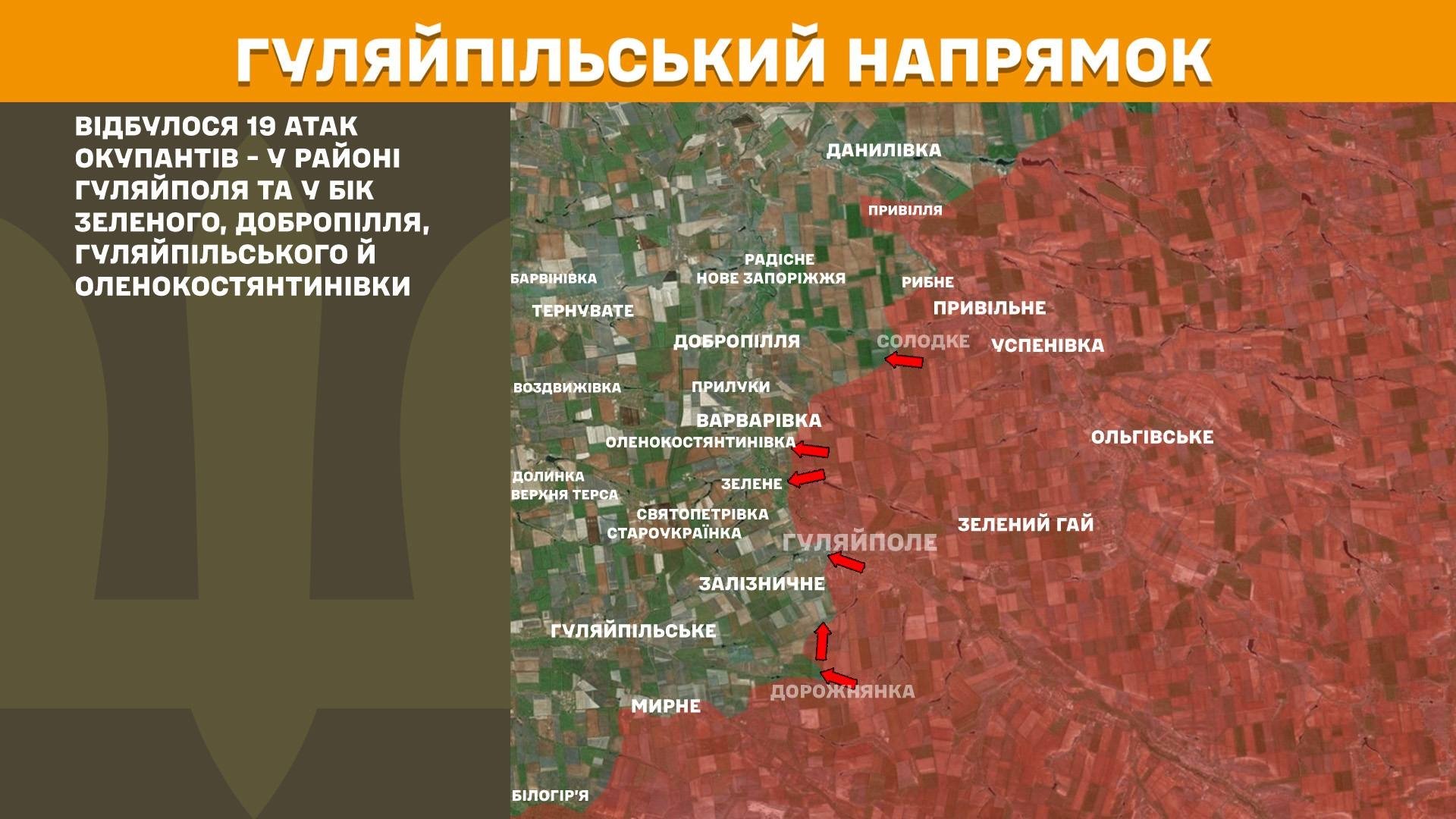 На Гуляйпольском направлении произошло 19 атак оккупантов - в районе Гуляйполя и в сторону Зеленого, Доброполья, Гуляйпольского и Леноконстантиновки.