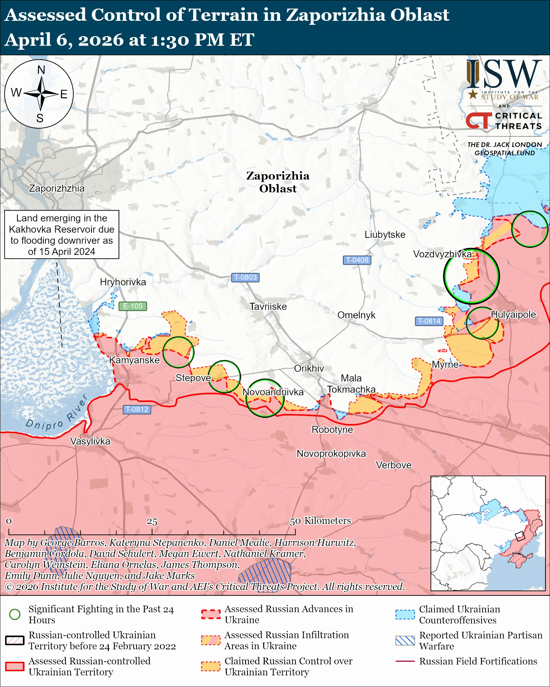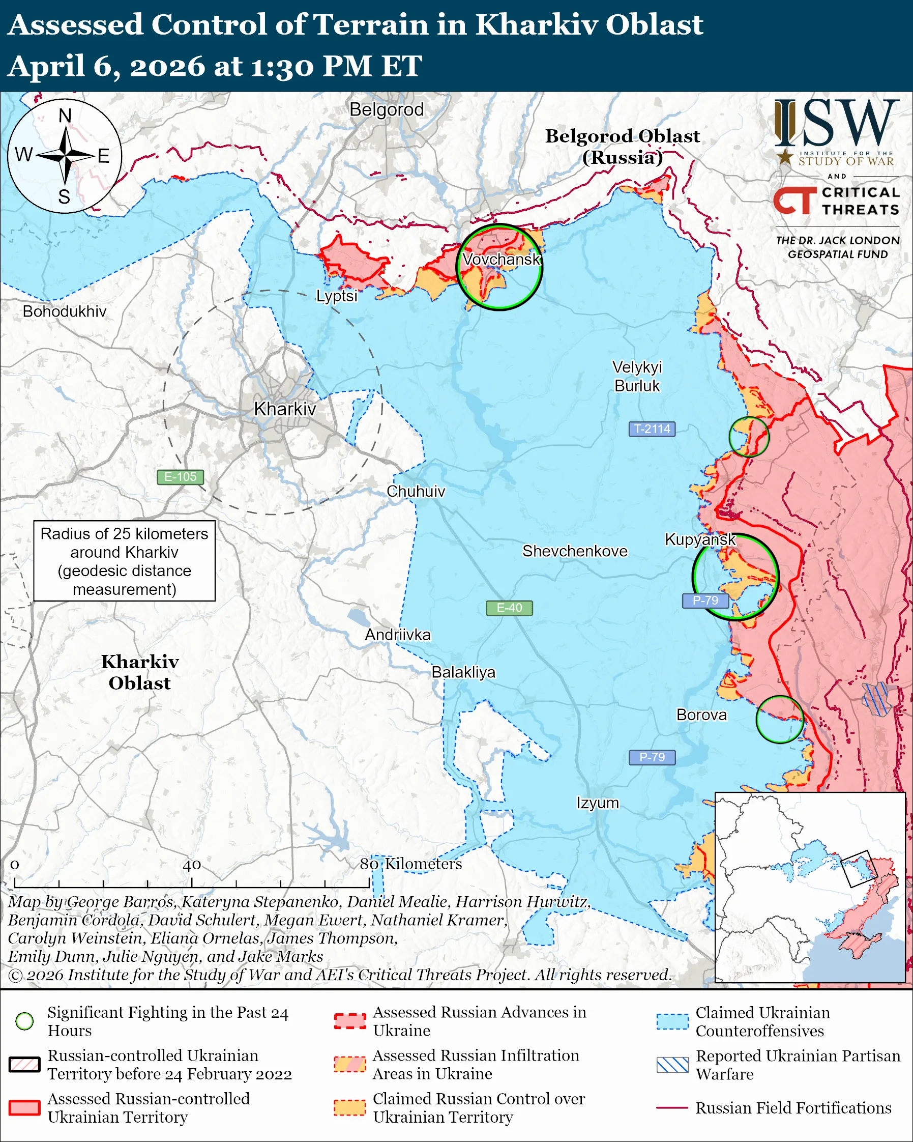 Карта боевых действий в Украине на 7 апреля 2026 года