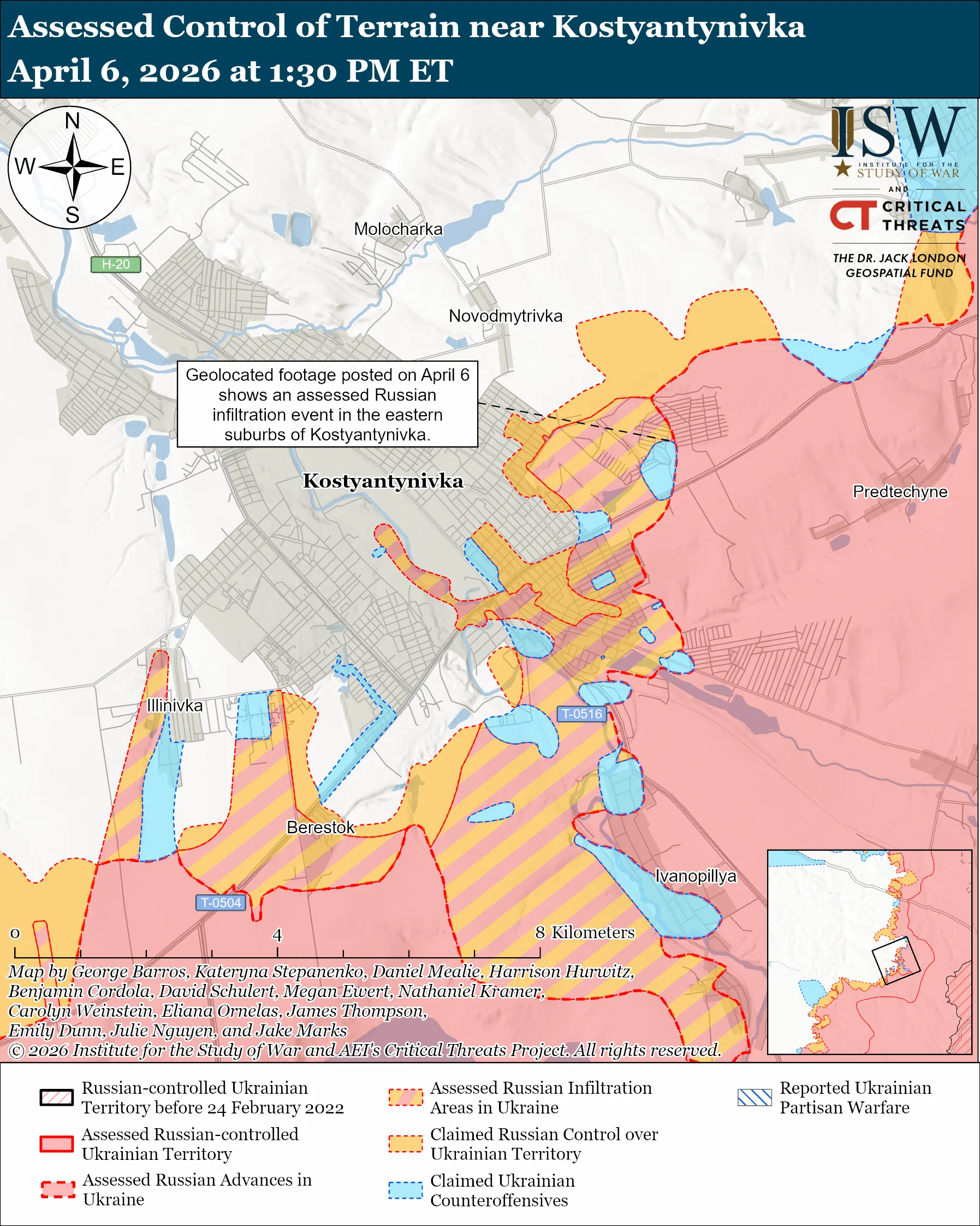 Карта боевых действий в Украине по состоянию на 7 апреля 2026