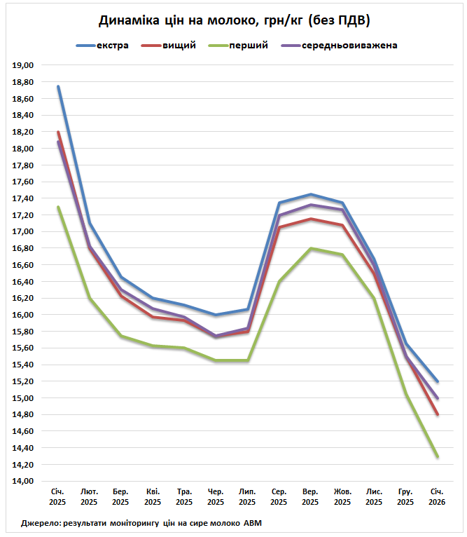Начало 2026 года принесло украинским производителям молока неожиданный вызов. Закупочные цены на молоко-сырье начали снижаться, следуя мировому обвалу стоимости сливочного масла. Почти половина молока, поступающего на переработку в Украине, используется для производства сливочного масла.