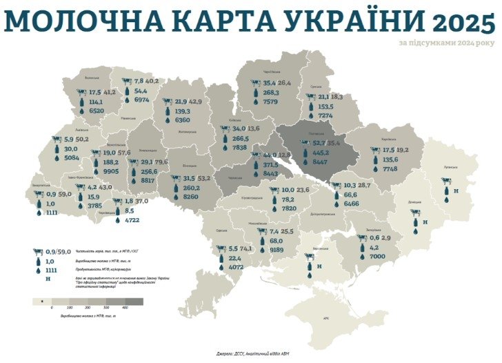 - Полтавская область — 8447 кг/корову/год.