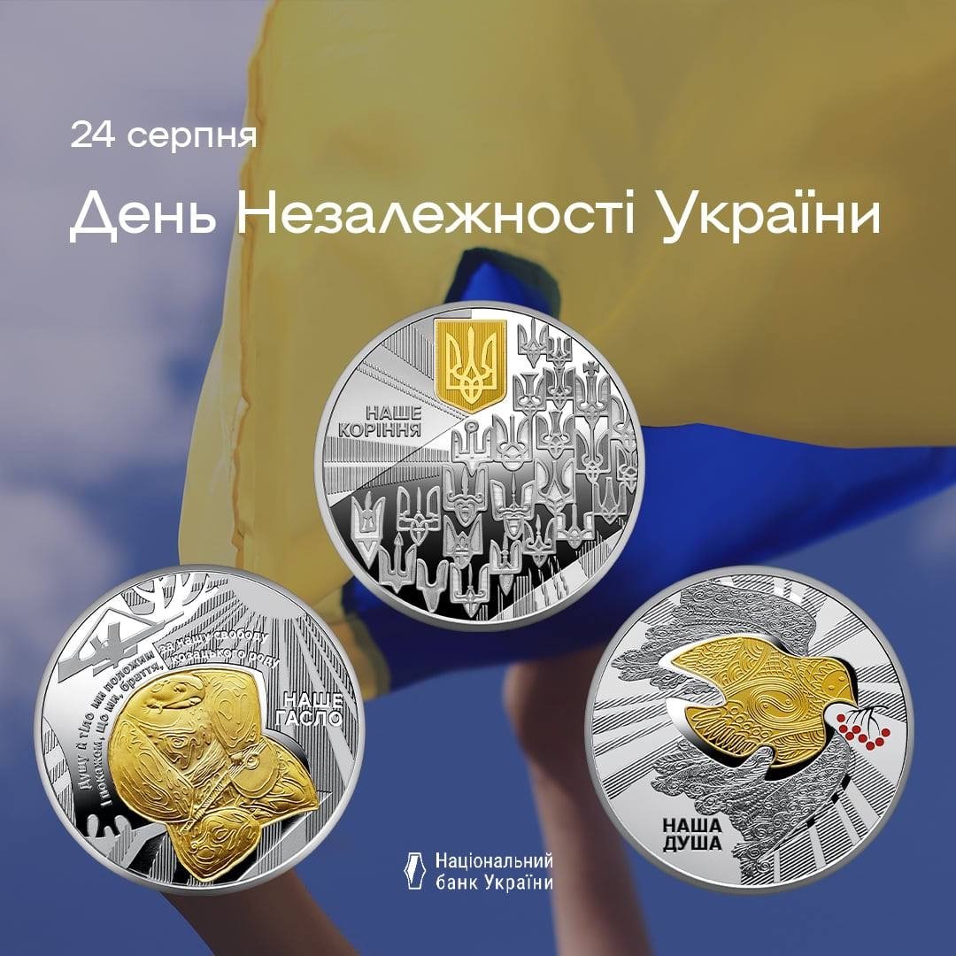 24 августа Национальный банк Украины ко Дню Независимости ввел в обращение набор серебряных памятных монет "Государственные символы Украины" и представил памятную монету "130 лет со дня рождения Василия Вышиванного".