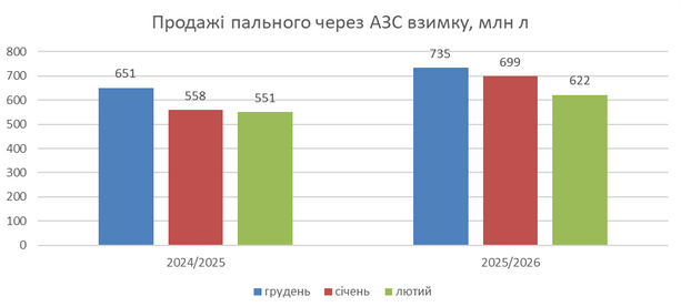 За зиму розничная реализация бензина, дизельного горючего и автогаза в Украине составила 2,06 млрд литров. Этот показатель на 17% превысил данные прошедшего периода и стал рекордным с 2021 года.