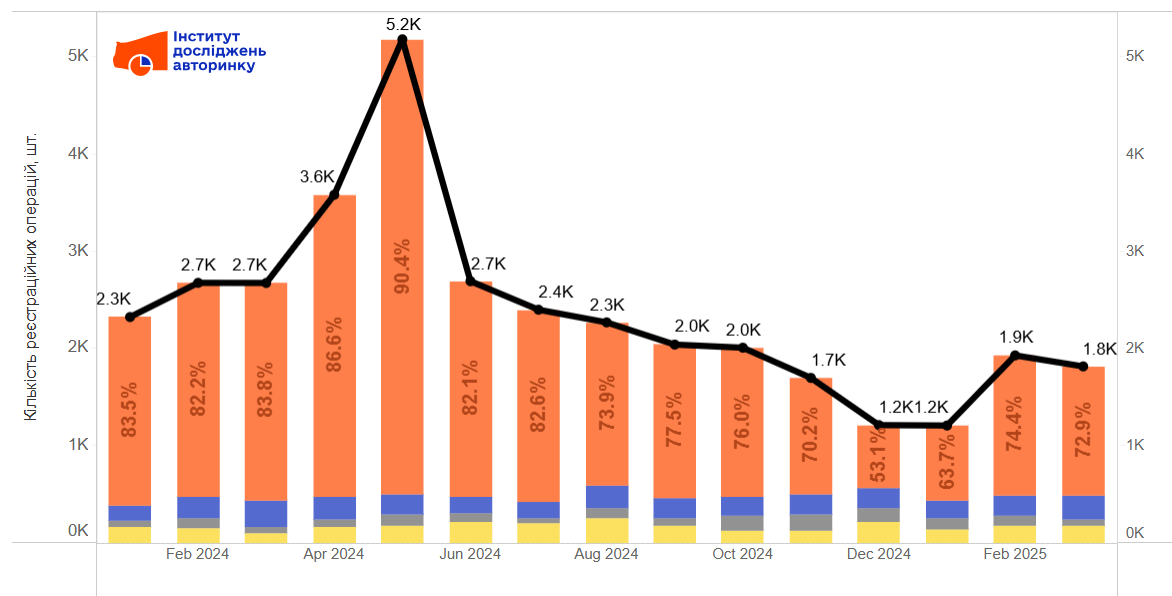 В первом квартале 2025 года украинский рынок грузовиков с полной массой более 3,5 тонн (за исключением седельных тягачей) сократился на 35,4% по сравнению с аналогичным периодом прошлого года.