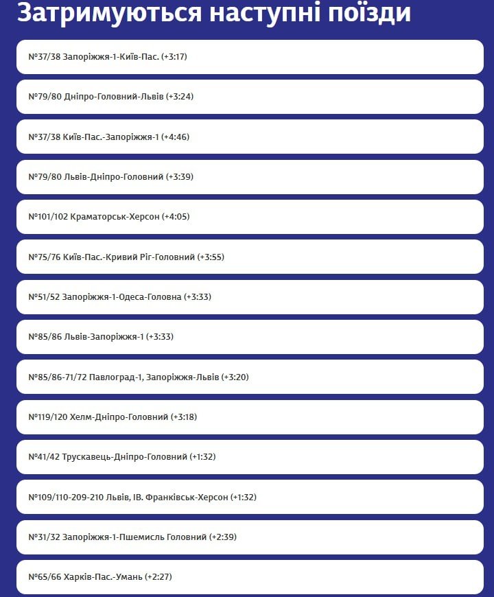 В ночь на 17 сентября в результате атаки страны-агрессора РФ была повреждена железнодорожная инфраструктура. Из-за обесточивания задерживаются более 40 поездов как международного, так и местного назначения.