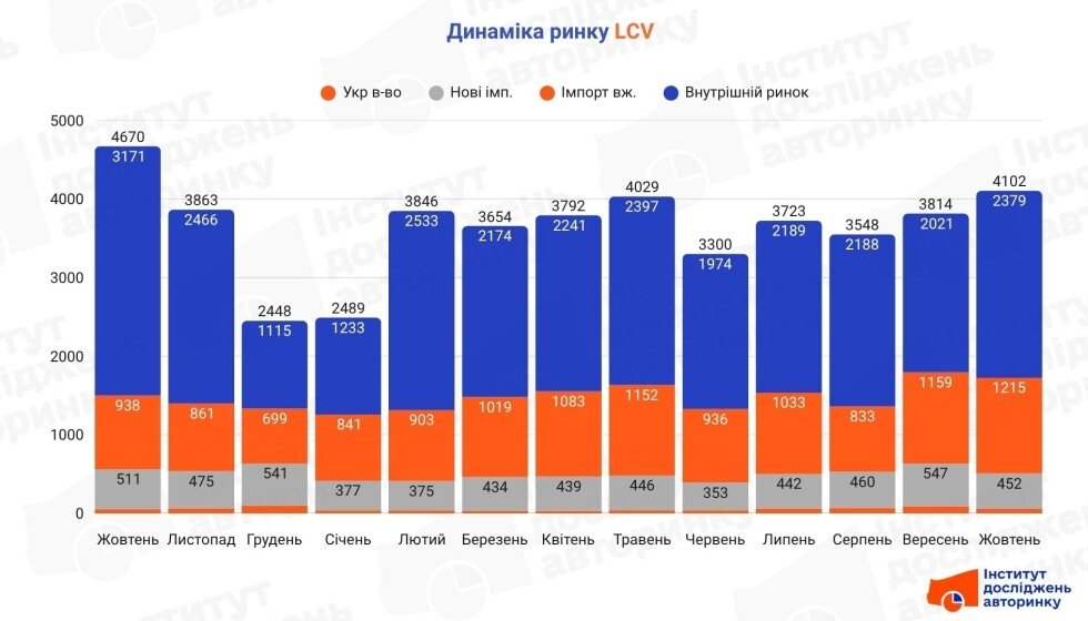 Сегмент легких коммерческих автомобилей (LCV) остается ключевым компонентом украинского авторынка, сочетая практичность, экономичность и универсальность. В октябре в Украине было приобретено 4,1 тыс. LCV – это на 7,6% больше, чем в сентябре. В то же время в годовом исчислении наблюдается спад на 12,2%.