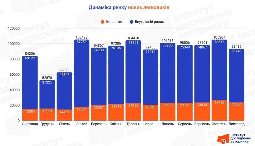 Сезонное затишье, наступившее в ноябре 2025 года, привело к снижению активности на украинском авторынке. Суммарно граждане приобрели 93 485 б/у легковых автомобилей, что значительно меньше, чем рекордные объемы октября (свыше 105 тысяч).