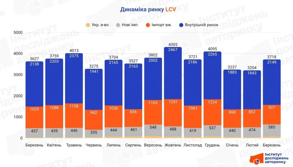 Мартовская статистика рынка легких коммерческих автомобилей (LCV, до 3,5 т) свидетельствует о постепенном восстановлении деловой активности. Несмотря на высокие цены на топливо, около 90 грн за дизель и 73 грн за бензин бизнес адаптируется к новым условиям. В общей сложности за месяц зафиксировано более 3,7 тыс. регистрационных операций во всех сегментах.