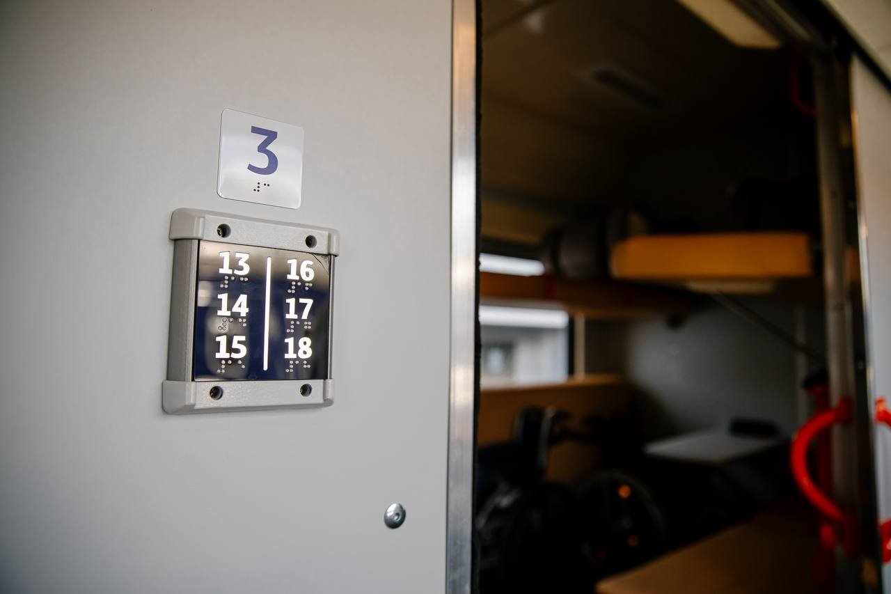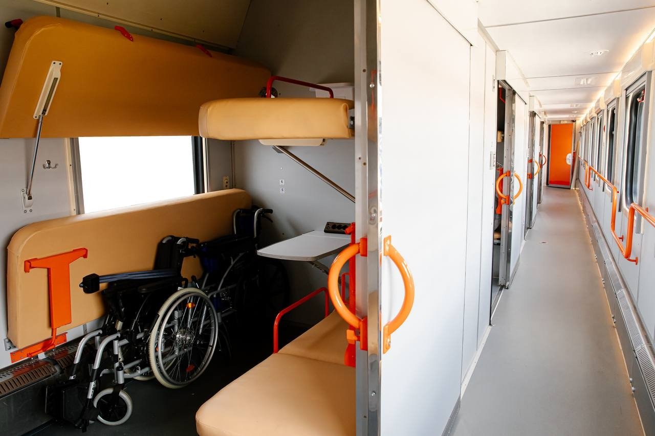 - четыре увеличенных купе: каждое рассчитано на 2 пассажира с инвалидностью и 2 сопровождающих; комбинированный формат: