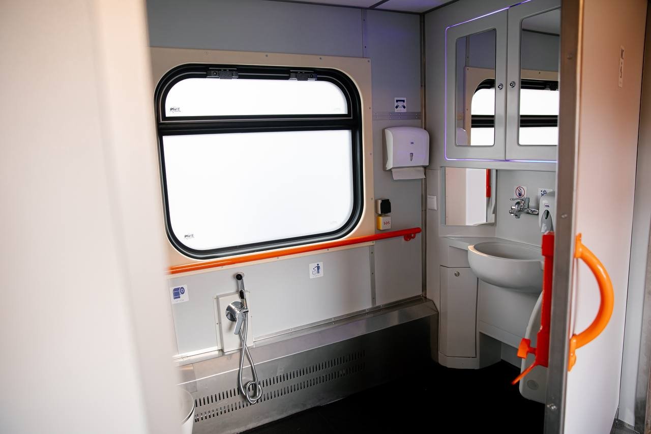 Вагон полностью перестроили учитывая потребности пассажиров на колесном кресле: