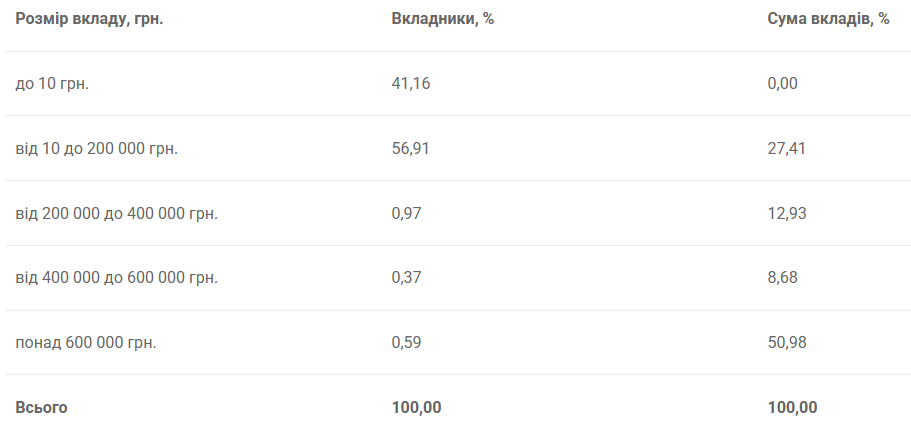 На 1 сентября 2025 года распределение вкладов физических лиц в банковской системе по размерам выглядит следующим образом: