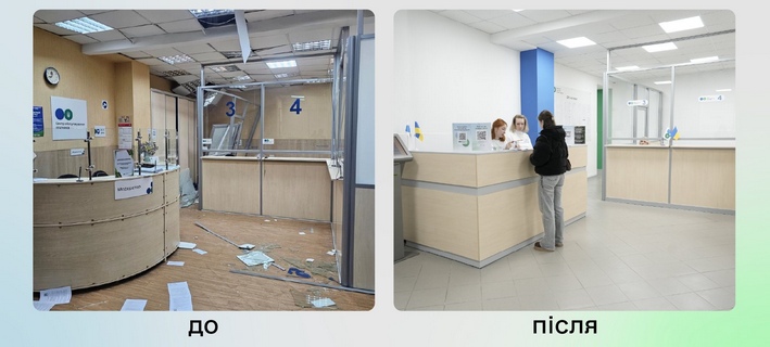 По ее словам, из-за обстрела РФ, пришлось временно остановить работу двух центров обслуживания плательщиков. ЦОП на Шолуденко удалось восстановить через несколько дней, поскольку повреждения были незначительными. Сегодня же полноценно заработал и второй. Теперь удалось не только отремонтировать фасад и заменить окна, но и обустроить современное, удобное и доступное пространство для каждого налогоплательщика.