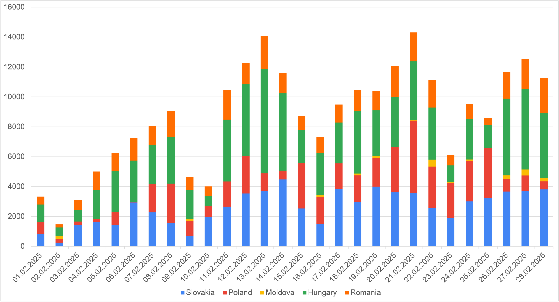 В феврале 2025 г. Украина увеличила импорт электроэнергии почти на 30%, по сравнению с январем 2025 — до 244 тыс. МВт·час. Наибольшую часть в структуре импорта занимают Венгрия и Словакия.