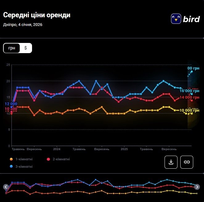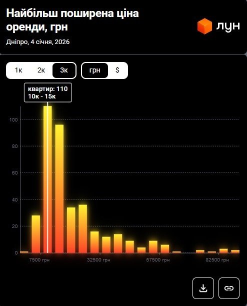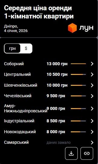 Цены на аренду квартир в Днепре в январе 2026 (инфографика)