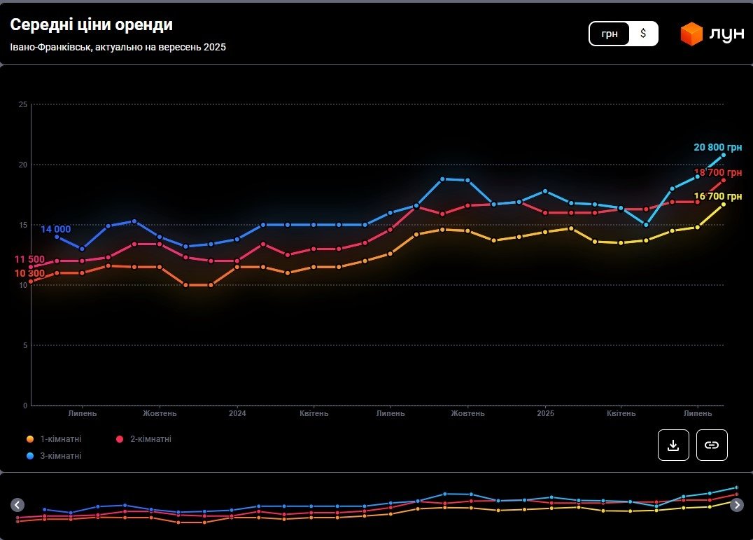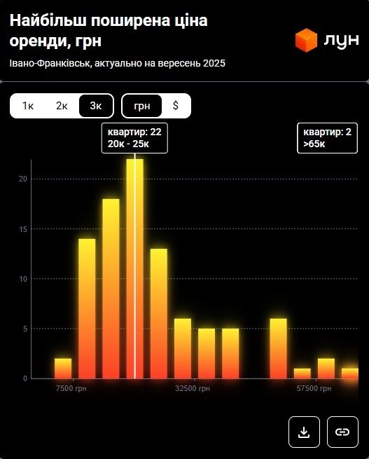 Цены на аренду квартир в Ивано-Франковске в сентябре 2025 года (инфографика)