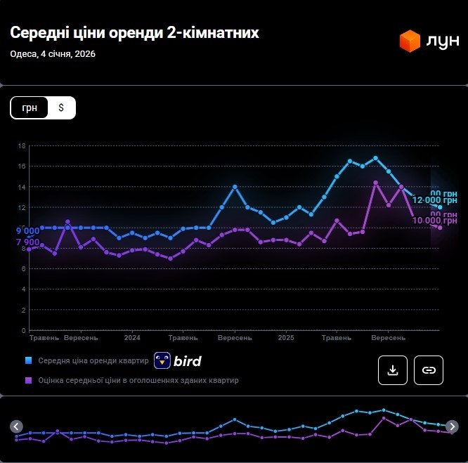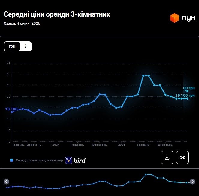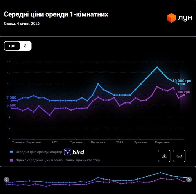 Цены на аренду квартир в Одессе в январе 2026 года (инфографика)