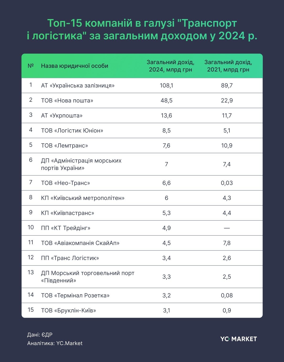 - сукупний дохід топ-15 логістичних компаній у 2024 році перевищив 233 млрд грн.