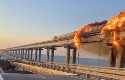 Тим часом радник голови Офісу Президента Михайло Подоляк відреагував на вибухи та пожежу на Кримському мості словами про те, що "все незаконне має бути знищене".