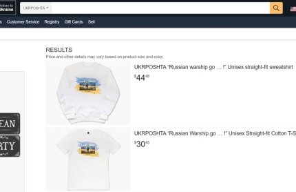 Зазначимо, що "Укрпошта" продає через Amazon марку "Russian warship… DONE!", хоча в Україні останній продаж марки "Російський військовий корабель... ВСІ!" пройшов ще 10 червня.